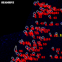 Black segments are analyzed here. Roll mouse over color images to view segments. Best viewed in a wide browser window (1200 pixels or more). Download SED & P(z) plots to view larger versions.