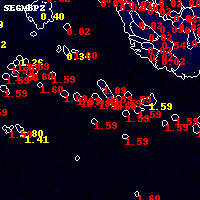 Black segments are analyzed here. Roll mouse over color images to view segments. Best viewed in a wide browser window (1200 pixels or more). Download SED & P(z) plots to view larger versions.