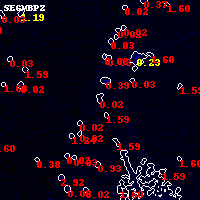 Black segments are analyzed here. Roll mouse over color images to view segments. Best viewed in a wide browser window (1200 pixels or more). Download SED & P(z) plots to view larger versions.