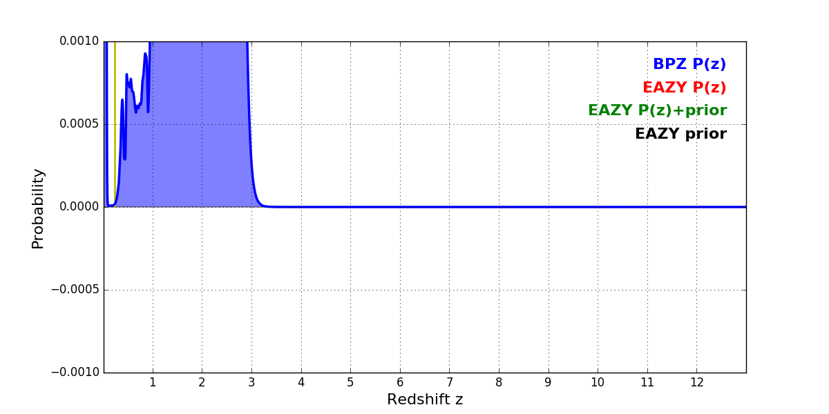 In P(z) plots: Yellow lines mark the cluster redshift z = 0.228,