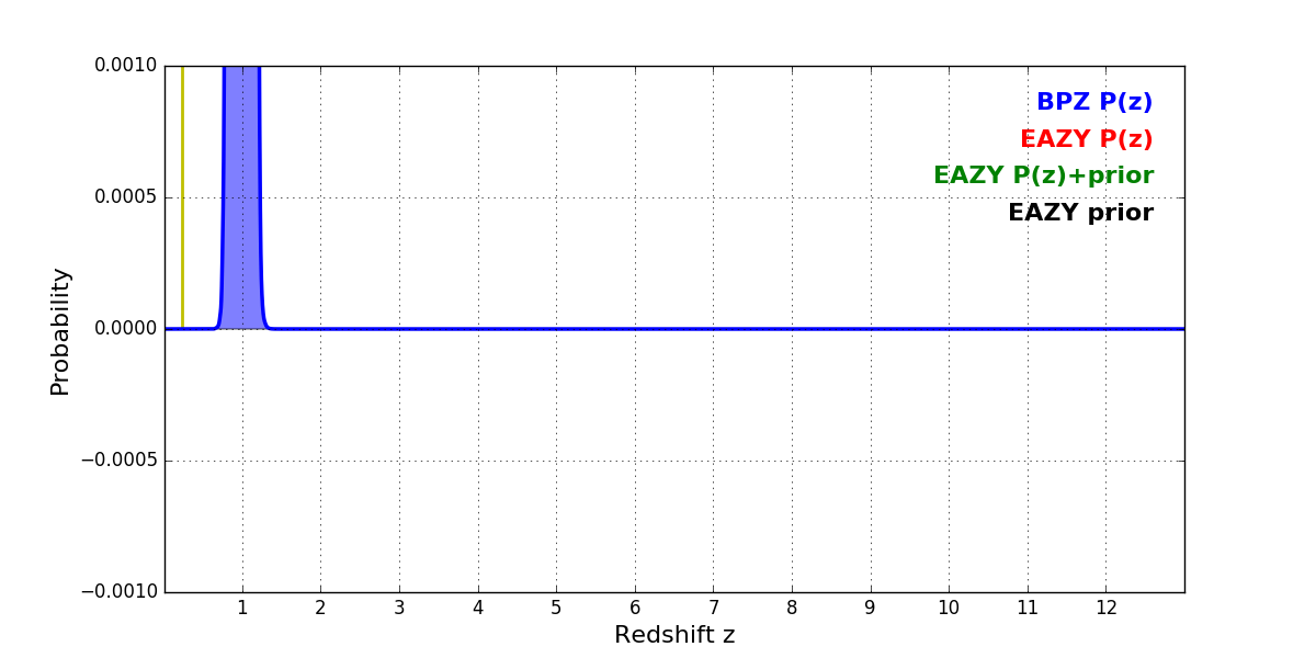 In P(z) plots: Yellow lines mark the cluster redshift z = 0.228,