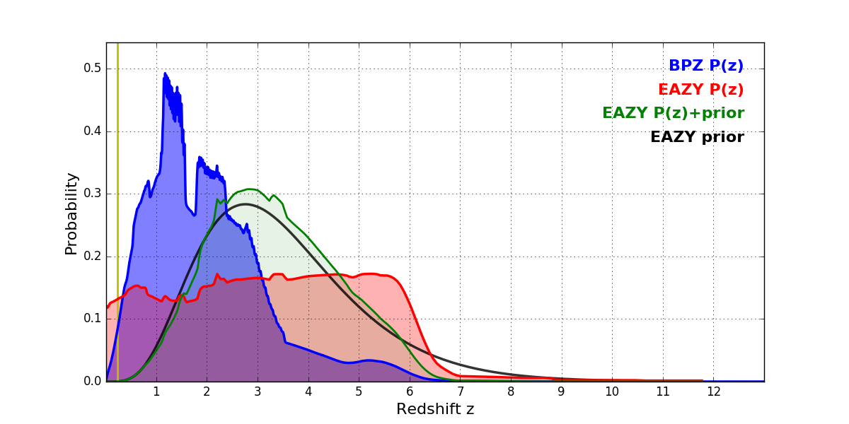 In P(z) plots: Yellow lines mark the cluster redshift z = 0.228,