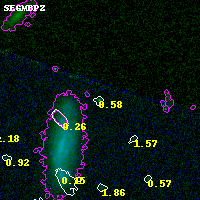 Object #1031   x,y = (2677, 4194)   RA, Dec = (07:23:17.544, -73:25:33.60) = (110.82310, -73.42600)   BPZ = 0.577 [0.252--0.759]   type = 7.10 (Scd_B10 - SB1_B10)   stellarity = 0.98   chisq2 = 0.00   ODDS = 0.48   z_cluster = 0.390