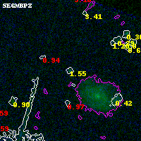 Black segments are analyzed here. Roll mouse over color images to view segments. Best viewed in a wide browser window (1200 pixels or more). Download SED & P(z) plots to view larger versions.