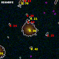 Object #1420   x,y = (2563, 3714)   RA, Dec = (07:23:19.152, -73:26:02.40) = (110.82980, -73.43400)   BPZ = 0.362 [0.296--0.405]   type = 4.10 (Ell4_A_0 - ES0_B10)   stellarity = 0.03   chisq2 = 0.11   ODDS = 0.95   z_cluster = 0.390