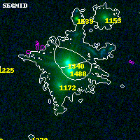 Object #1488   x,y = (1326, 3861)   RA, Dec = (07:23:36.504, -73:25:53.40) = (110.90210, -73.43150)   BPZ = 0.740 [0.707--0.920]   type = 5.10 (ES0_B10 - Sbc_B10)   stellarity = 0.99   chisq2 = 0.00   ODDS = 0.82   z_cluster = 0.390