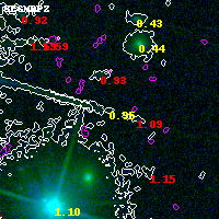 Object #1499   x,y = (3224, 3703)   RA, Dec = (07:23:09.888, -73:26:02.76) = (110.79120, -73.43410)   BPZ = 0.951 [0.270--2.676]   type = 9.00 (SB2_B10)   stellarity = 0.00   chisq2 = 0.19   ODDS = 0.15   z_cluster = 0.390