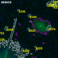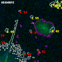 Black segments are analyzed here. Roll mouse over color images to view segments. Best viewed in a wide browser window (1200 pixels or more). Download SED & P(z) plots to view larger versions.