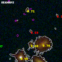 Object #1541   x,y = (2413, 3679)   RA, Dec = (07:23:21.264, -73:26:04.20) = (110.83860, -73.43450)   BPZ = 0.685 [0.440--0.845]   type = 9.30 (SB2_B10 - SB3_B10)   stellarity = 0.79   chisq2 = 1.20   ODDS = 0.44   z_cluster = 0.390