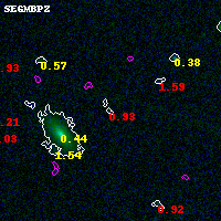 Black segments are analyzed here. Roll mouse over color images to view segments. Best viewed in a wide browser window (1200 pixels or more). Download SED & P(z) plots to view larger versions.