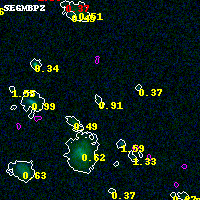 Black segments are analyzed here. Roll mouse over color images to view segments. Best viewed in a wide browser window (1200 pixels or more). Download SED & P(z) plots to view larger versions.