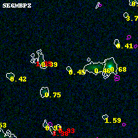 Object #2008   x,y = (3980, 3446)   RA, Dec = (07:22:59.256, -73:26:18.24) = (110.74690, -73.43840)   BPZ = 0.452 [0.267--4.452]   type = 6.00 (Sbc_B10)   stellarity = 0.06   chisq2 = 0.44   ODDS = 0.15   z_cluster = 0.390