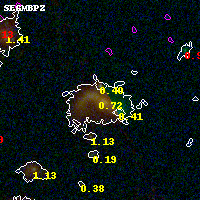 Object #2038   x,y = (3222, 3411)   RA, Dec = (07:23:09.888, -73:26:20.40) = (110.79120, -73.43900)   BPZ = 0.720 [0.606--0.860]   type = 7.00 (Scd_B10)   stellarity = 0.00   chisq2 = 0.00   ODDS = 0.75   z_cluster = 0.390