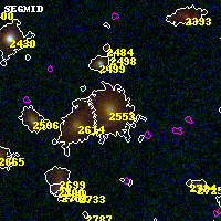 Object #2553   x,y = (2592, 3158)   RA, Dec = (07:23:18.744, -73:26:35.52) = (110.82810, -73.44320)   BPZ = 0.748 [0.653--0.849]   type = 7.40 (Scd_B10 - SB1_B10)   stellarity = 0.03   chisq2 = 0.13   ODDS = 0.85   z_cluster = 0.390