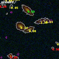 Object #2572   x,y = (2227, 3149)   RA, Dec = (07:23:23.856, -73:26:36.24) = (110.84940, -73.44340)   BPZ = 0.083 [0.042--0.484]   type = 3.90 (Ell4_A_0 - Ell5_A_0)   stellarity = 0.03   chisq2 = 0.31   ODDS = 0.42   z_cluster = 0.390