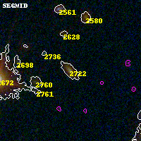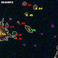 Black segments are analyzed here. Roll mouse over color images to view segments. Best viewed in a wide browser window (1200 pixels or more). Download SED & P(z) plots to view larger versions.