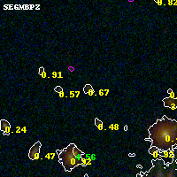Object #2871   x,y = (1814, 3015)   RA, Dec = (07:23:29.664, -73:26:44.16) = (110.87360, -73.44560)   BPZ = 0.670 [0.124--1.110]   type = 10.10 (SB3_B10 - SB11_A_0_l)   stellarity = 0.00   chisq2 = 0.14   ODDS = 0.30   z_cluster = 0.390