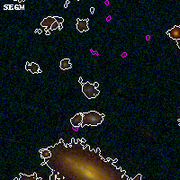 Black segments are analyzed here. Roll mouse over color images to view segments. Best viewed in a wide browser window (1200 pixels or more). Download SED & P(z) plots to view larger versions.