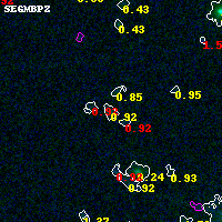Black segments are analyzed here. Roll mouse over color images to view segments. Best viewed in a wide browser window (1200 pixels or more). Download SED & P(z) plots to view larger versions.