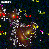 Black segments are analyzed here. Roll mouse over color images to view segments. Best viewed in a wide browser window (1200 pixels or more). Download SED & P(z) plots to view larger versions.