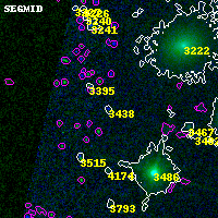 Black segments are analyzed here. Roll mouse over color images to view segments. Best viewed in a wide browser window (1200 pixels or more). Download SED & P(z) plots to view larger versions.