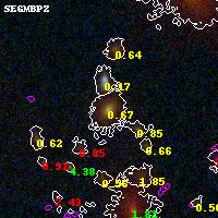Black segments are analyzed here. Roll mouse over color images to view segments. Best viewed in a wide browser window (1200 pixels or more). Download SED & P(z) plots to view larger versions.
