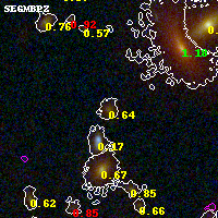 Black segments are analyzed here. Roll mouse over color images to view segments. Best viewed in a wide browser window (1200 pixels or more). Download SED & P(z) plots to view larger versions.