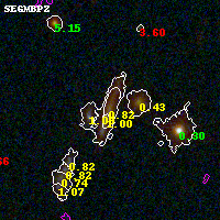 Black segments are analyzed here. Roll mouse over color images to view segments. Best viewed in a wide browser window (1200 pixels or more). Download SED & P(z) plots to view larger versions.
