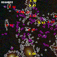 Black segments are analyzed here. Roll mouse over color images to view segments. Best viewed in a wide browser window (1200 pixels or more). Download SED & P(z) plots to view larger versions.