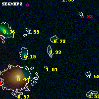 Black segments are analyzed here. Roll mouse over color images to view segments. Best viewed in a wide browser window (1200 pixels or more). Download SED & P(z) plots to view larger versions.
