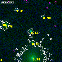 Black segments are analyzed here. Roll mouse over color images to view segments. Best viewed in a wide browser window (1200 pixels or more). Download SED & P(z) plots to view larger versions.
