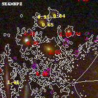 Black segments are analyzed here. Roll mouse over color images to view segments. Best viewed in a wide browser window (1200 pixels or more). Download SED & P(z) plots to view larger versions.