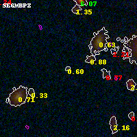 Black segments are analyzed here. Roll mouse over color images to view segments. Best viewed in a wide browser window (1200 pixels or more). Download SED & P(z) plots to view larger versions.