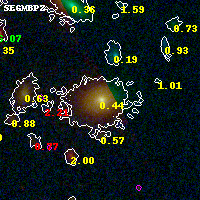 Black segments are analyzed here. Roll mouse over color images to view segments. Best viewed in a wide browser window (1200 pixels or more). Download SED & P(z) plots to view larger versions.