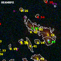 Black segments are analyzed here. Roll mouse over color images to view segments. Best viewed in a wide browser window (1200 pixels or more). Download SED & P(z) plots to view larger versions.