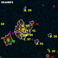 Black segments are analyzed here. Roll mouse over color images to view segments. Best viewed in a wide browser window (1200 pixels or more). Download SED & P(z) plots to view larger versions.