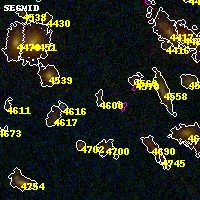 Black segments are analyzed here. Roll mouse over color images to view segments. Best viewed in a wide browser window (1200 pixels or more). Download SED & P(z) plots to view larger versions.