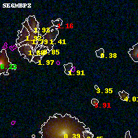 Black segments are analyzed here. Roll mouse over color images to view segments. Best viewed in a wide browser window (1200 pixels or more). Download SED & P(z) plots to view larger versions.