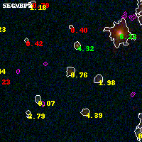 Black segments are analyzed here. Roll mouse over color images to view segments. Best viewed in a wide browser window (1200 pixels or more). Download SED & P(z) plots to view larger versions.