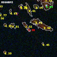 Black segments are analyzed here. Roll mouse over color images to view segments. Best viewed in a wide browser window (1200 pixels or more). Download SED & P(z) plots to view larger versions.