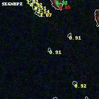 Object #4966   x,y = (1646, 1979)   RA, Dec = (07:23:32.040, -73:27:46.44) = (110.88350, -73.46290)   BPZ = 0.914 [0.446--1.798]   type = 8.20 (SB1_B10 - SB2_B10)   stellarity = 0.01   chisq2 = 0.52   ODDS = 0.22   z_cluster = 0.390