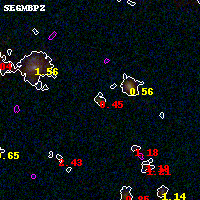 Object #4985   x,y = (2874, 1957)   RA, Dec = (07:23:14.784, -73:27:47.52) = (110.81160, -73.46320)   BPZ = 0.445 [0.163--4.287]   type = 9.70 (SB3_B10 - SB2_B10)   stellarity = 0.00   chisq2 = 1.35   ODDS = 0.48   z_cluster = 0.390