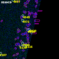 Black segments are analyzed here. Roll mouse over color images to view segments. Best viewed in a wide browser window (1200 pixels or more). Download SED & P(z) plots to view larger versions.