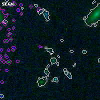 Black segments are analyzed here. Roll mouse over color images to view segments. Best viewed in a wide browser window (1200 pixels or more). Download SED & P(z) plots to view larger versions.