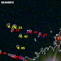 Object #5055   x,y = (3066, 1913)   RA, Dec = (07:23:12.072, -73:27:50.40) = (110.80030, -73.46400)   BPZ = 2.432 [0.131--2.888]   type = 11.00 (SB11_A_0_l)   stellarity = 0.00   chisq2 = 1.98   ODDS = 0.22   z_cluster = 0.390
