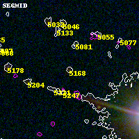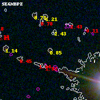 Black segments are analyzed here. Roll mouse over color images to view segments. Best viewed in a wide browser window (1200 pixels or more). Download SED & P(z) plots to view larger versions.