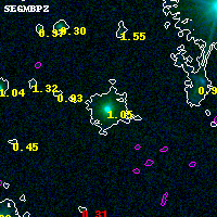 Black segments are analyzed here. Roll mouse over color images to view segments. Best viewed in a wide browser window (1200 pixels or more). Download SED & P(z) plots to view larger versions.