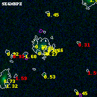 Object #5231   x,y = (1163, 1805)   RA, Dec = (07:23:38.832, -73:27:56.88) = (110.91180, -73.46580)   BPZ = 0.448 [0.129--2.774]   type = 10.10 (SB3_B10 - SB11_A_0_l)   stellarity = 0.00   chisq2 = 0.01   ODDS = 0.06   z_cluster = 0.390