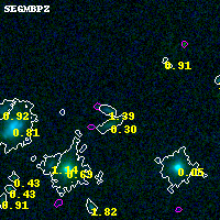 Object #5245   x,y = (3968, 1816)   RA, Dec = (07:22:59.400, -73:27:56.16) = (110.74750, -73.46560)   BPZ = 1.388 [0.123--2.206]   type = 9.20 (SB2_B10 - SB3_B10)   stellarity = 0.00   chisq2 = 0.00   ODDS = 0.16   z_cluster = 0.390