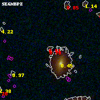 Black segments are analyzed here. Roll mouse over color images to view segments. Best viewed in a wide browser window (1200 pixels or more). Download SED & P(z) plots to view larger versions.